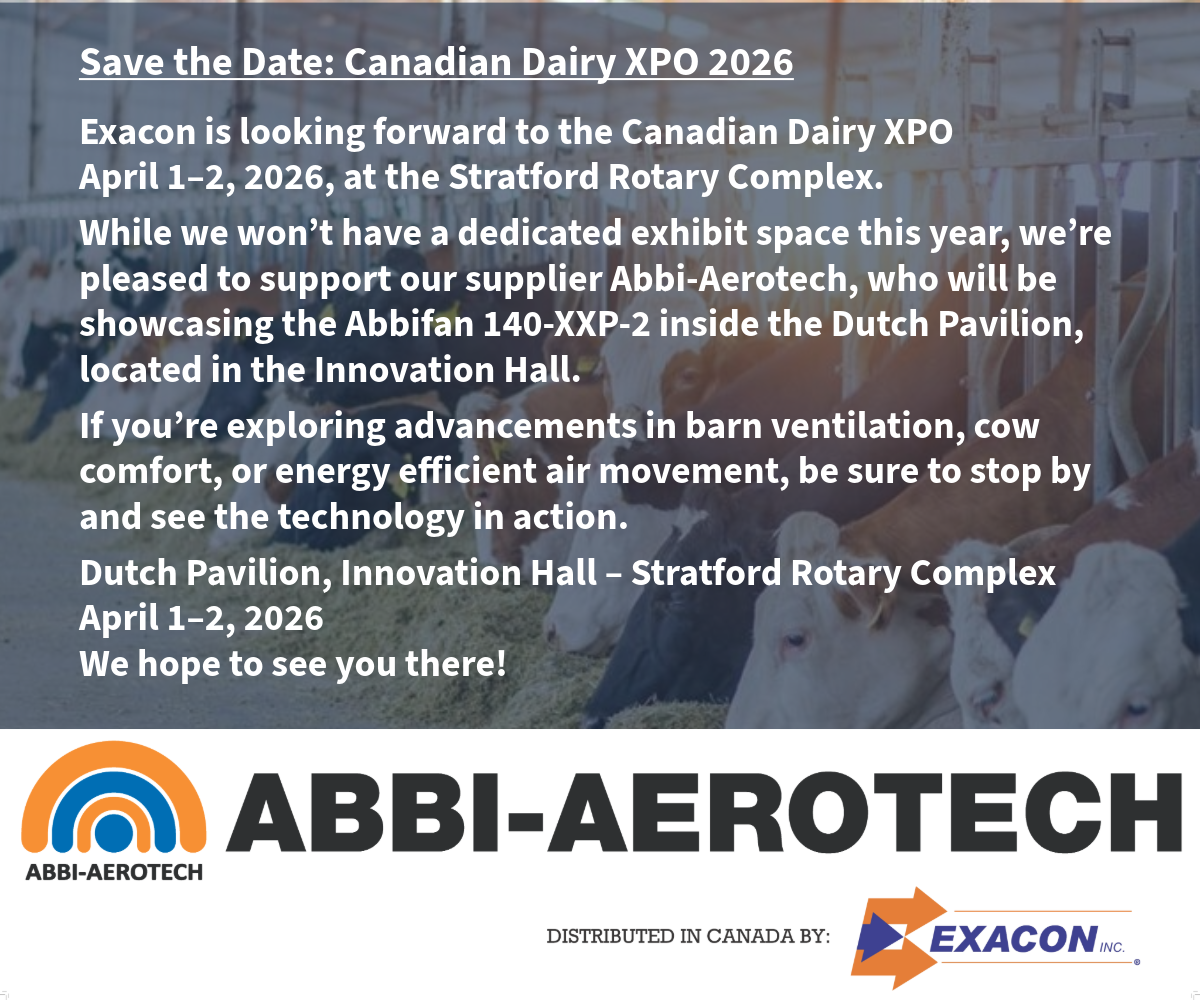 Exacon Inc. (“Exacon”) was incorporated in 1987 after initially starting out as the ‘Ventilation Division’ of Andex Metal Products. As ventilation became more specialized, it was decided that a separate company was necessary to supply and service the agricultural industry. After working out of the Andex building for a number of years, the continued growth of Exacon determined the need for additional space. In 2000, Exacon moved into their current facility consisting of 35,000 square feet.